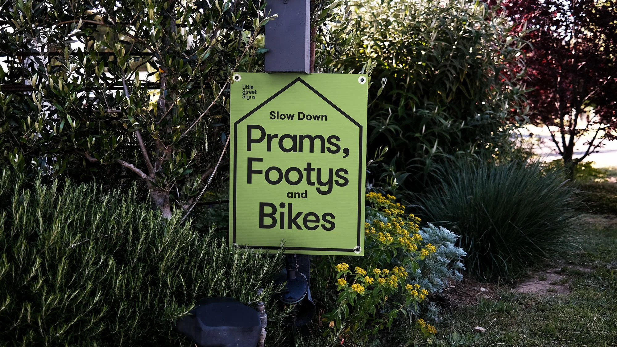 After recently becoming parents ourselves, we noticed how we engage with our street and neighbourhood had changed. Little Street signs are a friendly reminder that every street is shared and to keep our little ones, both furry and human, top of mind.